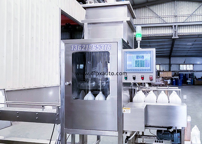 1-5-C全自動系列,可實現人工上桶,自動進桶,自動定量灌裝,自動理蓋上蓋,自動擰蓋,自動重桶出桶的自動化程度。設備通過機械限位實現自動對口,可視桶型滿足不同規格的容器灌裝需求。同時該設備可以配備第二套灌裝槍,同時滿足兩種物料的灌裝。可選配防爆電機,集氣罩,排風抽氣設備,網袋機,噴碼打印機,貼標機,裝箱機等設備。