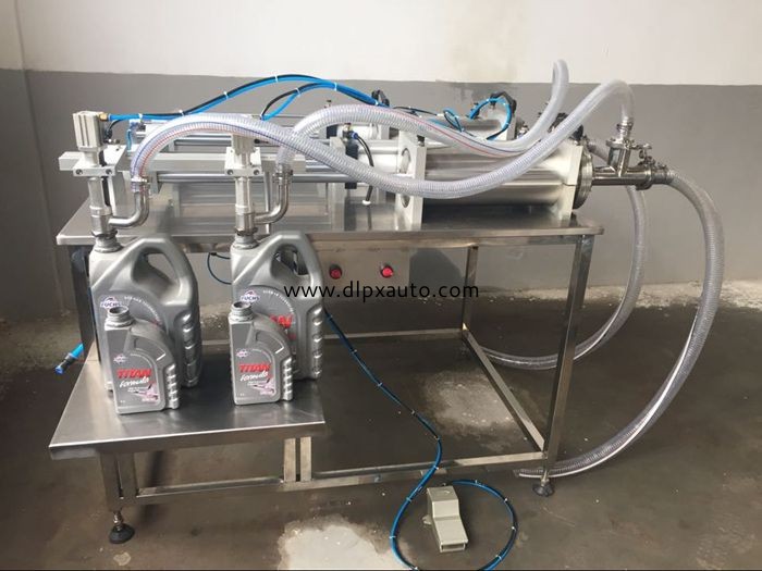 充填機是本公司開發的全氣動半自動活塞式灌裝系列的一種低濃度流體進行灌裝的液體灌裝機,它是通過氣缸帶動一個活塞及轉閥的三通原理來抽