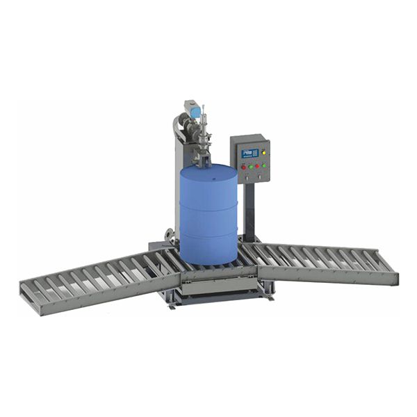 YCS-300-2液體灌裝機主要由灌裝噴槍、吸氣罩、接液杯、氣動球閥、系統防爆控制柜、稱重儀表、觸摸屏、PLC、秤臺、防爆輸送機、動力滾筒及無動力滾筒、自動分桶裝置、不銹鋼機架組成。