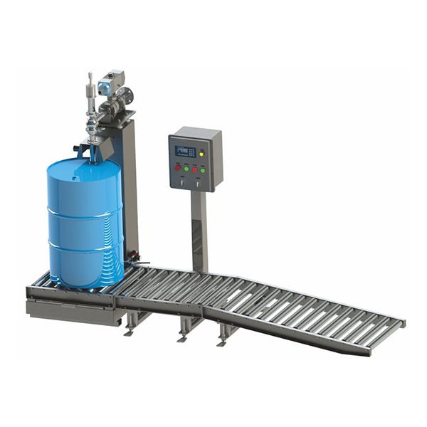 YCS-300-2液體灌裝機主要由灌裝噴槍、吸氣罩、接液杯、氣動球閥、系統防爆控制柜、稱重儀表、觸摸屏、PLC、秤臺、防爆輸送機、動力滾筒及無動力滾筒、自動分桶裝置、不銹鋼機架組成。