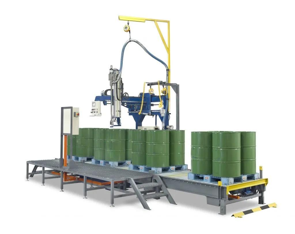 防爆液體灌裝機,自動進桶-自動開門-自動關門-自動灌裝-自動出桶,輥軸輸送,灌裝高度可調,適合IBC噸桶、四大桶等各種大桶的液體灌裝,多種出料方式設置,滿足客戶一機多用,多品種灌裝,快慢速灌裝保證灌裝精度,穩定性好,減少損耗,節省成本,減輕工人操作壓力。