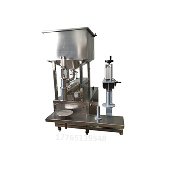 當儲槽里原料低于下限位時,供料裝置自動打開給儲槽供料,當儲槽液位達到上限位時,關閉供料裝置。人工將空桶放到秤臺上,人工對孔,然后點擊啟動按鈕,儀表首先判桶并扣除空桶皮重,灌裝頭打開進入快速落料,當達到慢進料設定重量時,自動轉為慢速落料。當重量達到目標值時停止落料,此時儀表回皮顯示總重,人工將成品桶取出并放蓋推到壓蓋區,光感感應到有桶,壓蓋氣缸下降壓蓋,壓蓋完成后人工取出,整個動作流程結束。