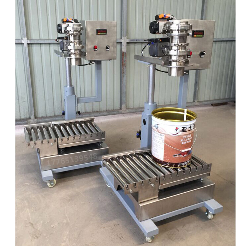 30KG真石漆液體灌裝機是一種專門用于真石漆、質感漆、膩子漿等無需過濾的流動性物料的樹脂灌裝機。它主要由稱重灌裝系統、機架、不銹鋼輥道、壓蓋系統、氣動控制、電器控制等系統組成,從而實現人工放桶-自動灌裝-人工放蓋-自動壓蓋-成品存儲。