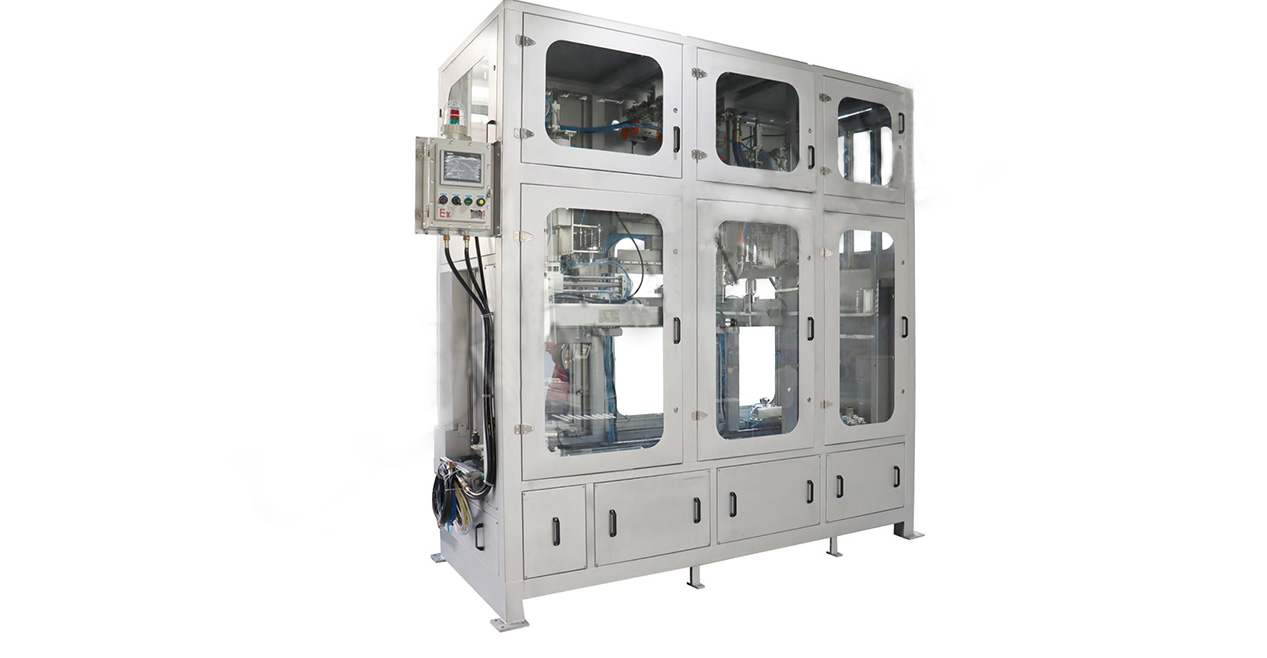 This machine is specially designed for 50-300kg liquid barrel packaging. It is equipped with a visual window, automatic lifting and sliding door, automatic barrel feeding, sliding door opening and closing, automatic identification of barrel opening, automatic lid opening, automatic filling and automatic rotation. Threaded cap and leak detection, automatic waterproof cap (optional), automatic out of the barrel.This machine adopts programmable logic controller (PLC) to control, touch screen operation. Frequency conversion governor, strong control ability, high degree of automation, using special devices, no filling without barrels, no filling if the barrel mouth is not correct, et c., so that the mechanical and electrical integration of the machine has been perfectly displayed.