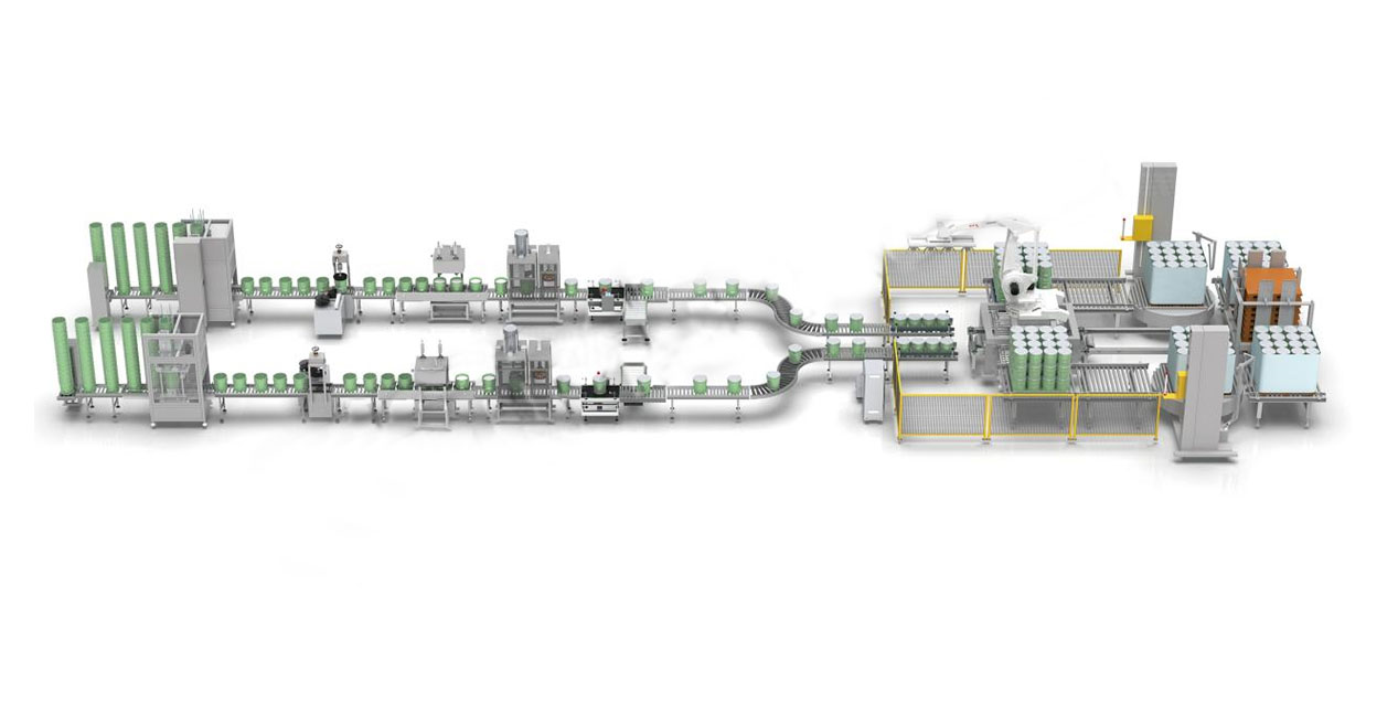 Manual barrel stacking (barrel stacking elevator), automatic vertical barrel separator, automatic barrel printing and labeling machine, automatic weighing filling machine, automatic cap feeding and capping machine, online checkweighing and rejection, drum positioning, automatic stacking machine, robot palletizing unit, automatic horizontal strapping machine