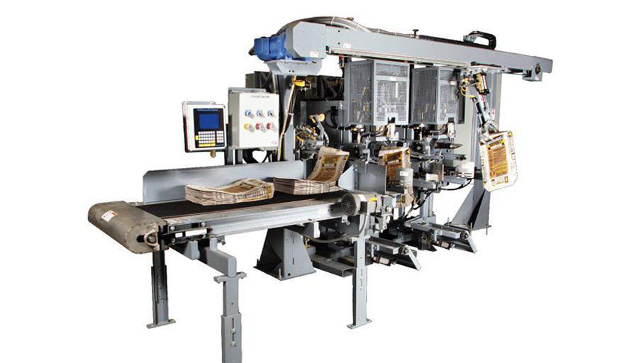 509 型自動多口閥口袋上袋機會自動將閥口袋套在一個、兩個或三個閥口袋包裝機的灌裝口上,速度可達 12 袋/分。509 型閥口袋上袋機可輕松調節,適用于各種寬度和長度的口袋,同時在更換不同尺寸的口袋時實現灌裝機少的更換時間。