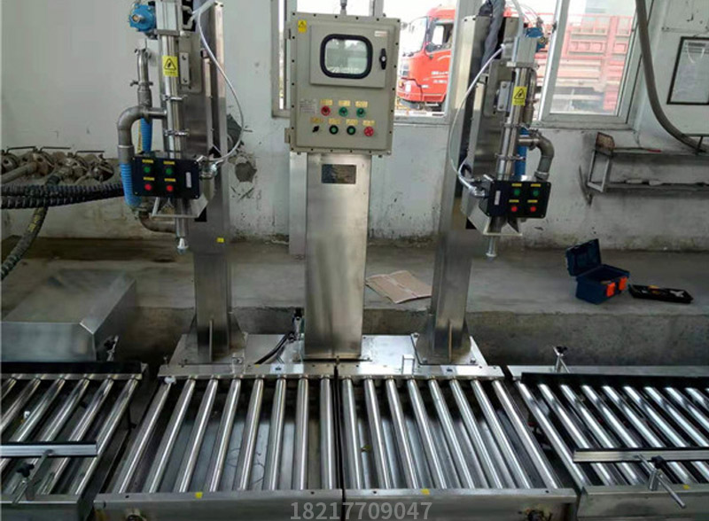 開機---人工放桶到秤臺快速定位對口---系統自動偵測將定位---自動去皮---自動打開搶及球閥組開始灌裝--大、中、小、微量四段灌裝---到達目標值---灌槍自動關閉并升至桶外--人工鎖蓋、碼垛。
