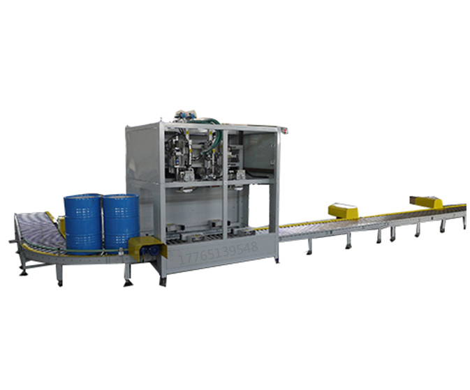 設(shè)計獨特的灌裝頭裝置易于操作,灌注快速、精確;并且灌裝機大限度地保證灌注完畢時殘液的滴漏。操作時,操作者先將空桶開蓋放置在空桶暫存區(qū)!輸送線自動輸送至灌裝工位,液體灌裝機自動對口。然后打開灌裝閥門,精確地雙速灌裝;灌裝結(jié)束,灌裝秤頭自動提升至桶外,滴漏盤自動接至灌裝頭底部灌裝完成,輸送線啟動自動將成品桶輸送至鎖蓋區(qū),人工鎖蓋完成自動輸送至成品區(qū),叉車叉走成品桶整個灌裝流程結(jié)束!