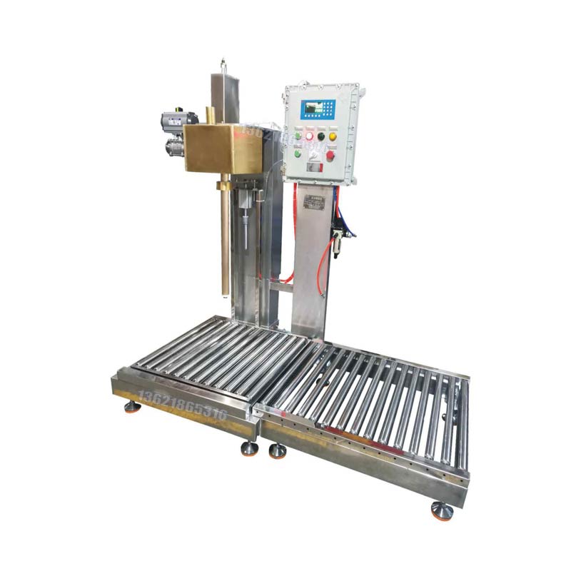 工作流程:人工上空桶--自動(dòng)定量灌裝一一人工配合機(jī)器鎖蓋即完成。