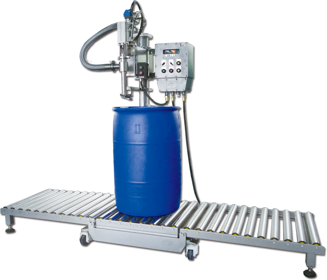 This flameproof type explosion protected electronic load cell filling is designed for accurate filling in hazardous environment with safety for petroleum, chemical, kerosene, paint, organic solvent and so forth. Entire electronics is housed in the flameproof type housing complete with intrinsic safety barriers for connection to load cells. A fume extractor is included to extract fume emitted during filling.