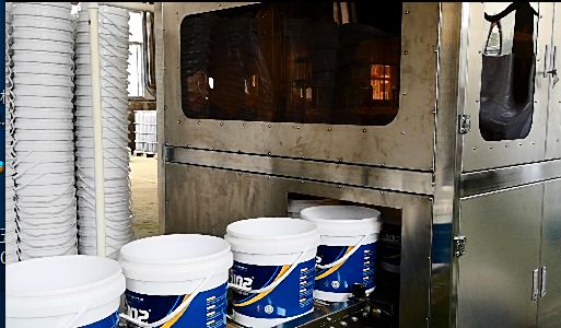 自動(dòng)進(jìn)桶,多頭灌裝,潛入桶底灌裝,稱(chēng)重定量灌裝,自動(dòng)供蓋,自動(dòng)分蓋上蓋,自動(dòng)封蓋。