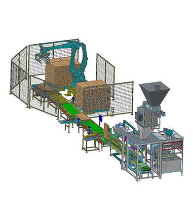 專業為新能源、化工、化肥行業根據現場訂制全自動包裝碼垛的自動化解決方案。